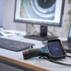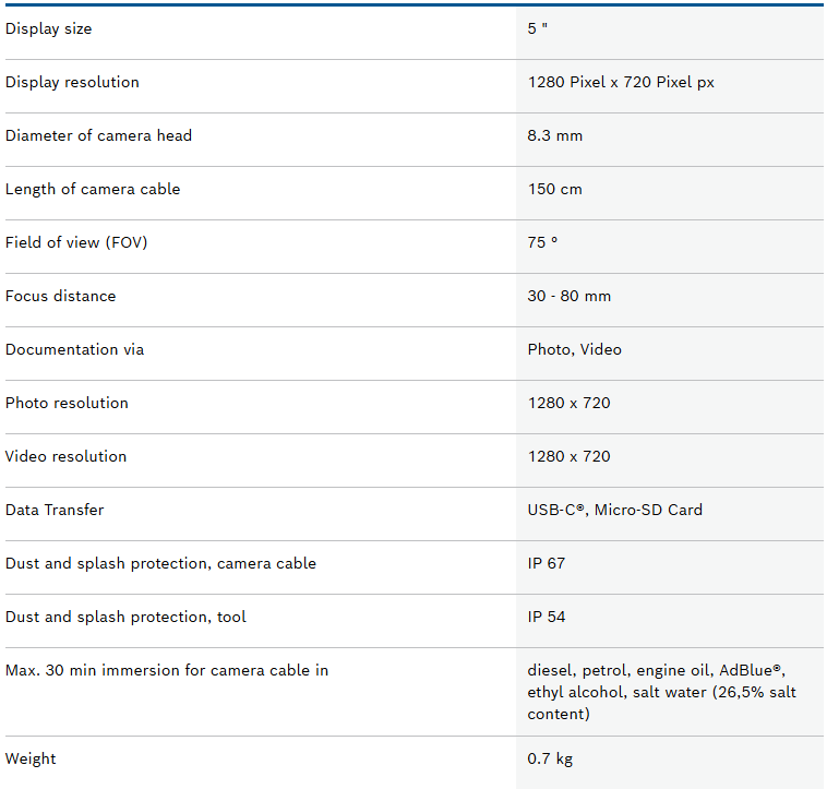 The inspection camera is perfectly suited for many tradespeople applications such as, for example, inspecting the interior of distribution boxes, pipes, and wall cavities as well as for hydraulic systems and applications in the automotive sector.
