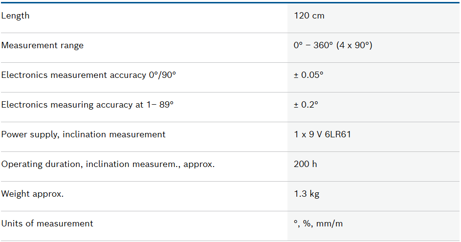 • Measures precise tilts in degrees, percent or millimetres/metres