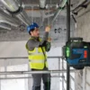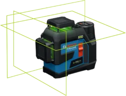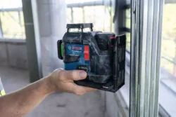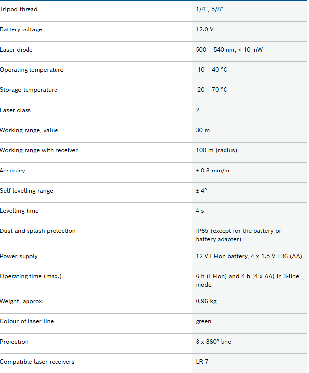 It features 3 x 360° lines for simultaneous horizontal and vertical levelling, allowing for easy layout of large spaces with just one tool. For starting right away, the GLL 12V-100-33 CG laser receiver mode is always activated. With the optional laser receiver LR 7 Professional you can extend the working range up to 100 metres (radius). The bright green laser lines offer up to four times better visibility than red lines, ensuring precision in every task.