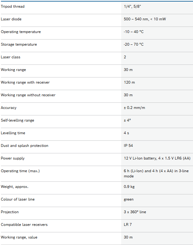 - High work efficiency due to 3 x 360° lines: Simultaneous performance of horizontal and vertical levelling applications in the entire room with only one tool