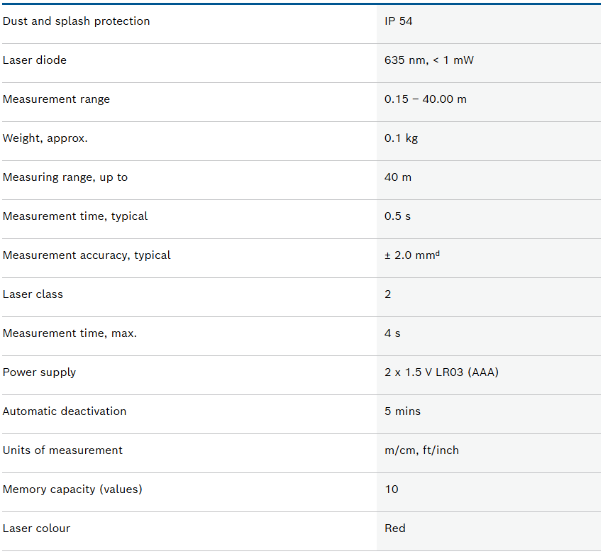 In addition to its built-in dust and splash water protection, the Laser Measure GLM 40 Professional also features a sturdy, shockproof housing that protects the tool from damage when dropped from a height of up to 1 metre.