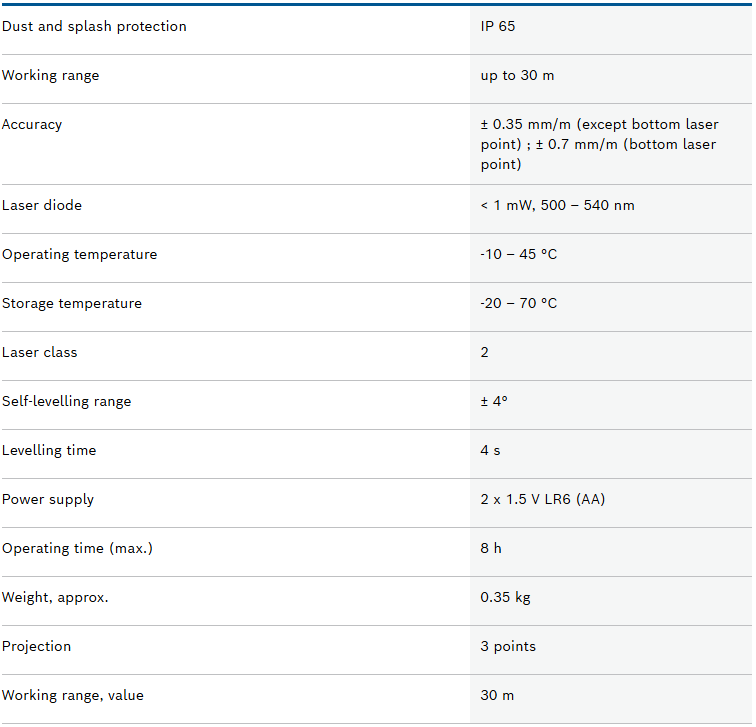 The 3-point laser GPL 3 G Professional is resilient and small in design, making it ideal for drywalling. Its green laser points provide up to four times better visibility than red points. With its rubberised housing and recessed glass, as well as IP65 dust and water jets protection, the GPL 3 G Professional also resists tough jobsite conditions. This 3-point laser is equipped with an integrated rotation mount that features strong magnets for fast and secure tool mounting while also enabling convenient transportation.