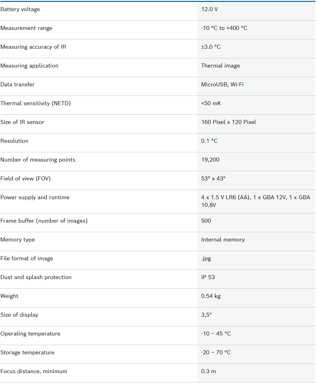 - Fast exchange of data and easy documentation of thermal images with the Bosch ThermalOn app
