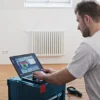 The thermal camera GTC 400 C Professional measures and visualises temperature differences in seconds and easily records the results. The Bosch ThermalOn app documents and forwards measured values fast. Intelligent picture-in-picture technology overlays detailed real and heat-sensing images (19,200 px), resulting in a high-quality image and clear localisation of temperature differences. With its dual power system, a 12 V LI-ION battery or standard alkaline batteries are suitable power supplies.
