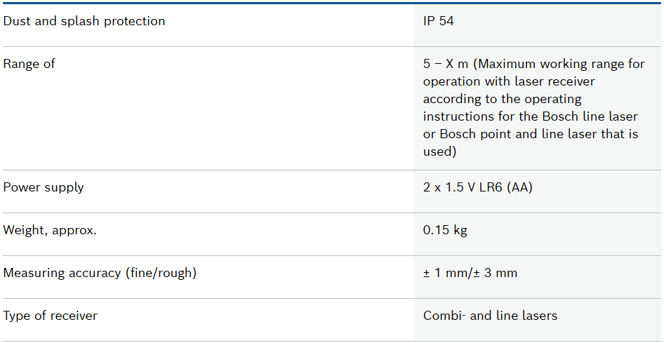 Green and red beam detection Reception area 80 mm Display Illumination Easy attachment due to magnets on the top of the receiver IP54 dust and splash water protection